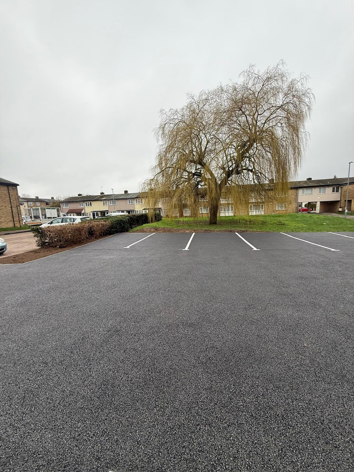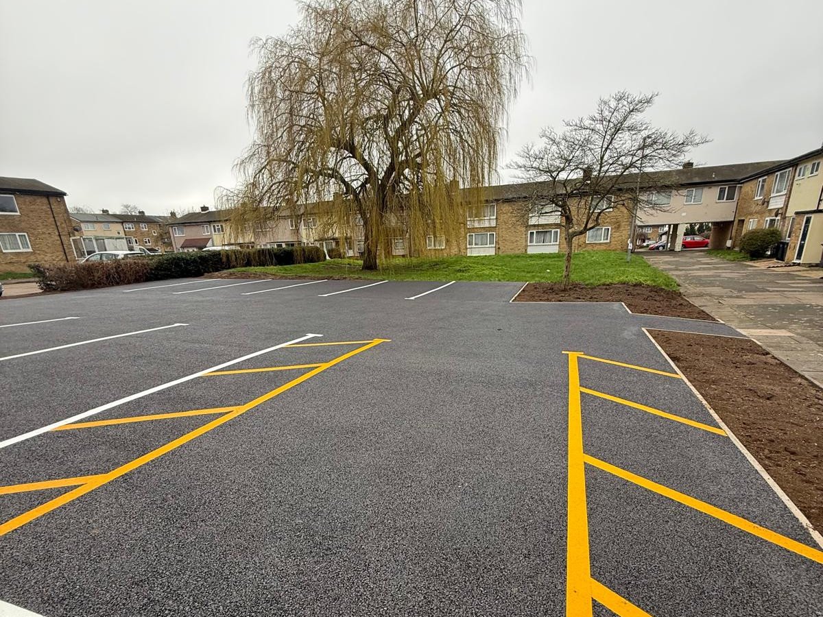 This project involved the complete refurbishment of a car park at The Downs in Harlow, CM20. The works included new landscaping throughout the site and full tarmac resurfacing to create a modern, functional parking area.